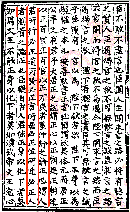 君子大居正之說謂:正心以正朝廷;正朝廷以正百官;正百官以正万民者,董仲舒之論正也。謂人君所行必正道;所發必正言;所居必正位;所近必正人者。