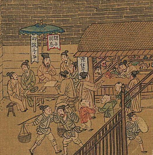食物中有馓子,又名环饼,或曰即古之寒具也。京师凡卖熟食者,必为诡异标表语言,然后所售益广。尝有货环饼者,不言何物,但长叹曰:“亏便亏我也!”谓价廉不称耳。绍圣中,昭慈被废居瑶华宫,而其人每至宫前,必置担太息大言,遂为开封府捕而究之。无它,犹断杖一百罪。自是改曰:“待我放下歇则个。”人莫不笑之,而买者增多。东坡在儋耳,邻居有老妪业此,请诗于公甚勤。戏云:“纤手搓来玉色匀,碧油煎出嫩黄深。夜来春睡知轻重,压匾佳人缠臂金。”