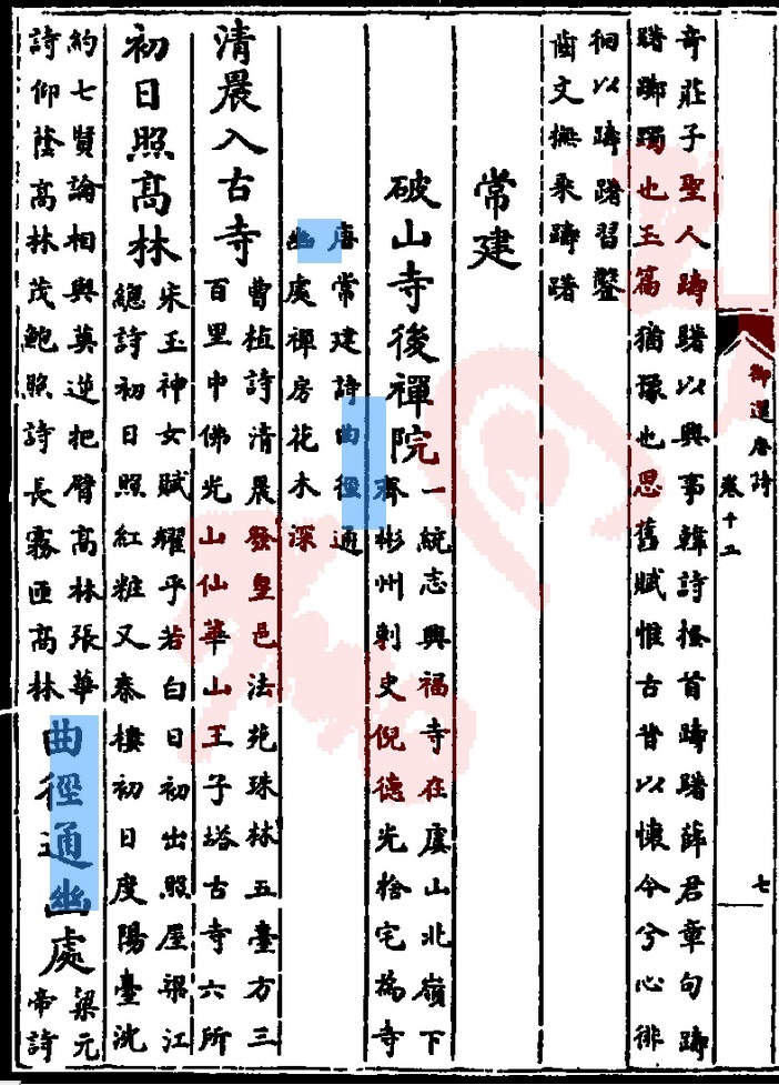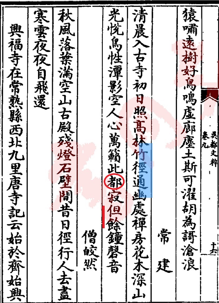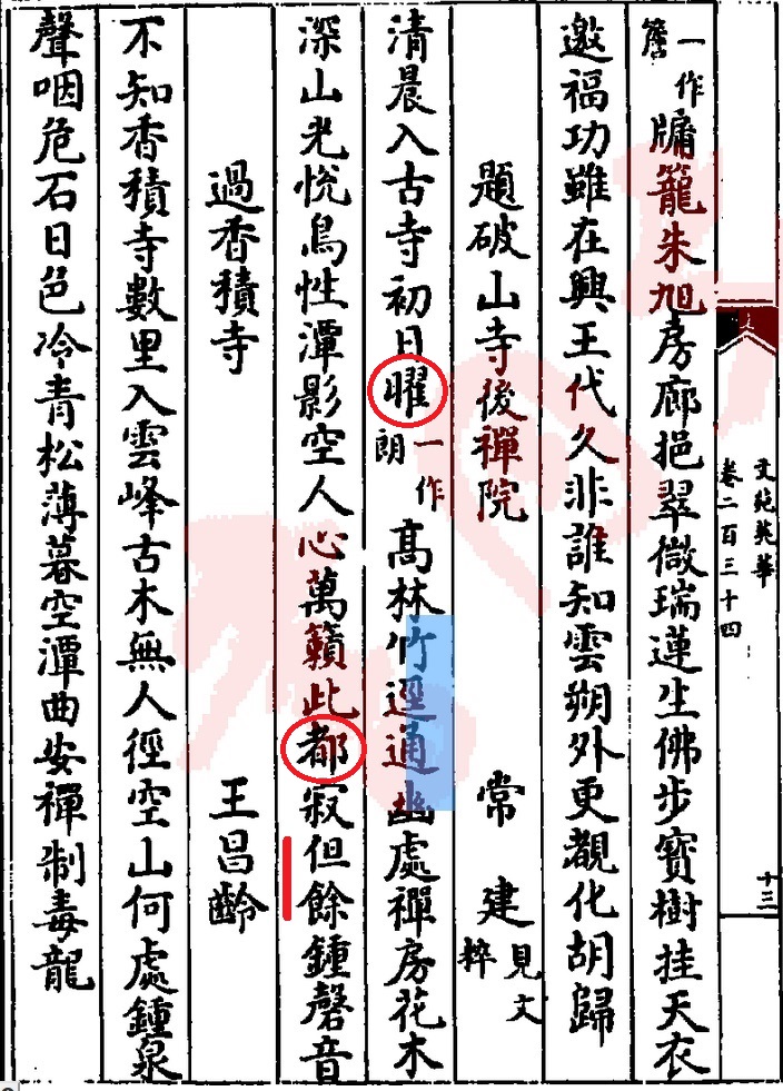 版本二. 《御定全唐诗录》、《唐百家诗选》、《唐诗镜》、《河岳英灵集》、《唐贤三昧集》、《唐文粹》、《吴都文粹》中: