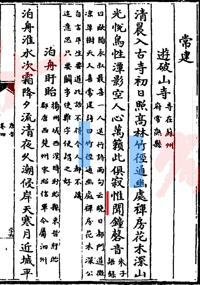 《题破山寺后禅院》是唐代诗人常建的一首题壁诗,入选《唐诗三百首》。此诗抒写清晨游寺后禅院的观感,以凝炼简洁的笔触描写了一个景物独特、幽深寂静的境界,表达了诗人游览名胜的喜悦和对高远境界的强烈追求。全诗笔调古朴,层次分明,兴象深微,意境浑融,简洁明净,感染力强,艺术上相当完整,是唐代山水诗中独具一格的名篇。