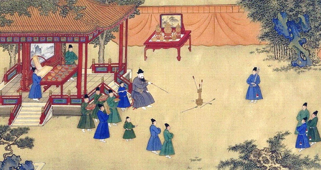 《出警入跸图》中的红衣者为锦衣卫校尉,着甲扛刀者为锦衣卫大汉将军: