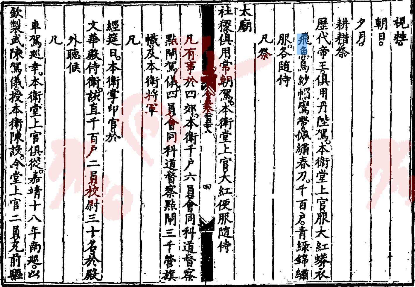 据《大明会典》二百二十八卷记载皇帝郊祀大祭时,锦衣卫官员着大红蟒飞鱼服,配绣春刀: