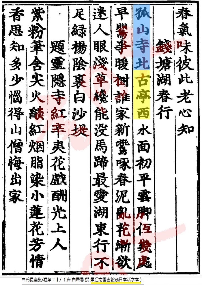再查阅搜到江南图书馆所藏日本活字本的《白氏长庆集》,发现“贾亭”是“古亭”。
